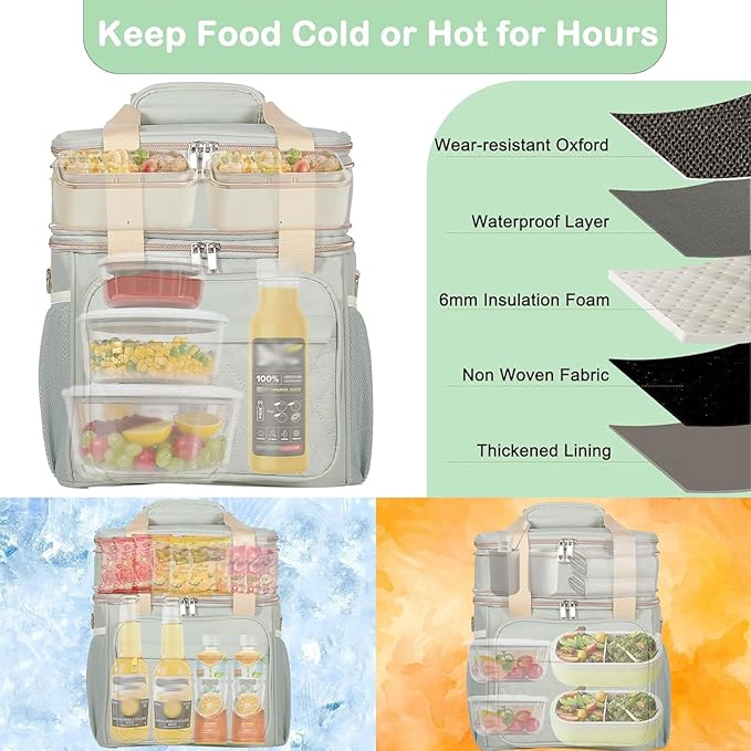 - Better Insulation Performance: 6mm thick insulation liner helps keep your food cold or warm at the right temperature for up to 8 hours. Foods that need to be kept separate from wet and dry can be stored in the top and bottom compartments