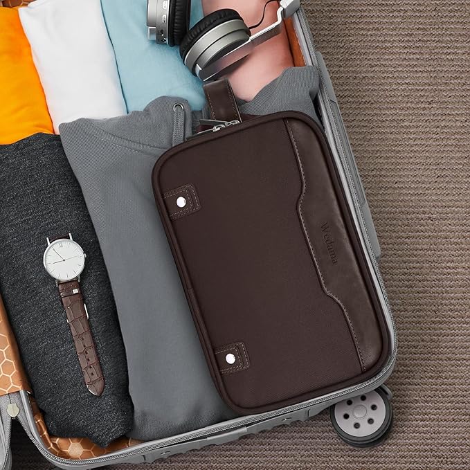 - Travel Essentials: This portable travel toiletry bag is perfect for business trips, travel, gym, camping, and family outings. The design of Wedama toiletry bag is joined PU leather and embellished with metal elements, which makes it classic and stylish. Great gift choice for friends, boyfriends, and family for various occasions like birthdays, Father's Day, Christmas Day, and Valentine's Day.