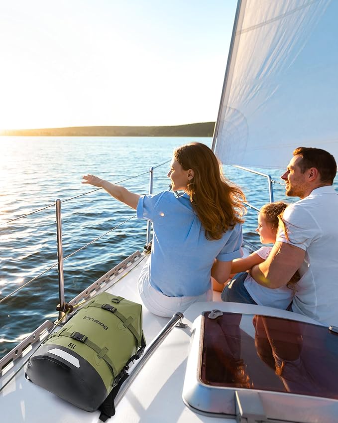 - [EXTRA LARGE STORAGE SPACE]:Boat bag is available in 35L/55L/85L capacity,roll top backpack has large opening for easy access to items,MOLLE system loop straps on the side of waterproof dry bag provide point of retention,and hook and loop closure on bottom is designed for easy locking.Reflective strips on the bottom of waterproof case increase travel safety,let him protect you on your trip.