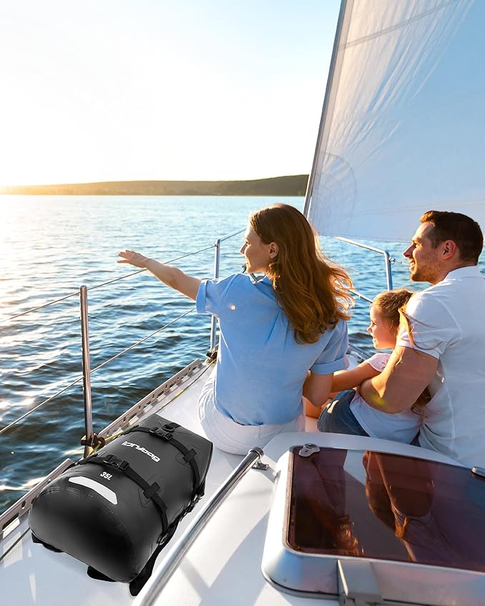• [EXTRA LARGE STORAGE SPACE]:Boat bag is available in 35L/55L/85L capacity,roll top backpack has large opening for easy access to items,MOLLE system loop straps on the side of waterproof dry bag provide point of retention,and hook and loop closure on bottom is designed for easy locking.Reflective strips on the bottom of waterproof case increase travel safety,let him protect you on your trip.