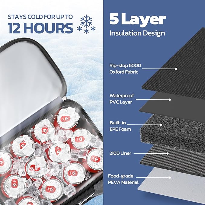- Stay Cool for Longer: Our Maelstrom lunch box for men /women is designed to keep your food and drinks cold for up to 12 hours. With its 5 layer insulation design, it’s the perfect soft cooler bag for your outdoor adventures.