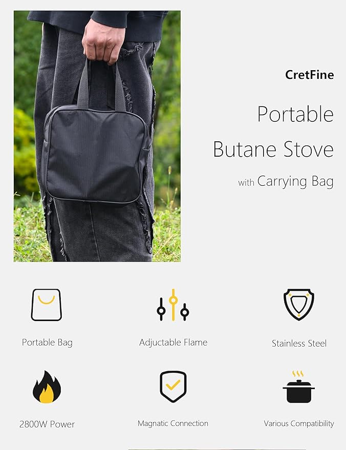 - 【User-friendly Operation】: With its simple design, using the portable butane stove is a breeze. Just buckle the butane gas tube, turn the switch, and the stove is ready to ignite . No lighters or matches are needed, providing added convenience during your outdoor activities or indoor use as emergency stove.