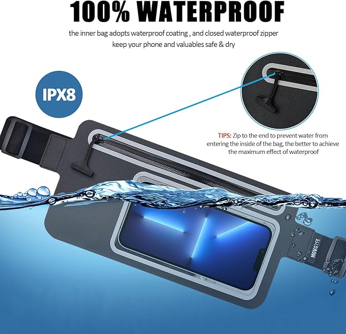 - 👍【IPX8 100% Waterproof&Multifuction】Our waterproof belt bag is made from high quality,durable,water resistant&scratch-resistant nylon material with waterproof coating.Super waterproof seal performance IPX8 waterproof up to 32 feet (10 meters) underwater for one hour! Not only perfect for running,hiking,camping,workout,walking,travelling in every life,but also fit outdoor water sports,swimming,beach,boating,snorkeling,kayaking,sailing,paddle surfing,rafting,water slides,pool water park,fishing
