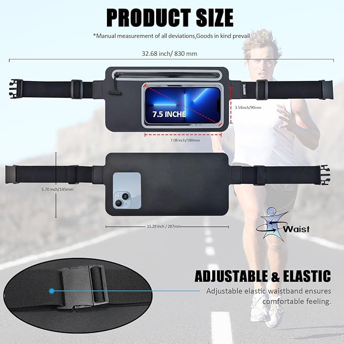 - 👍【Adjustable Straps】It’s with adjustable strap&buckle clip/adjustable running fuel belt/soft neoprene fuel belt.The strap velcro material that is stretchy&extender can stretch when you pull it then return to its original shape.Support any waist girth from 24 to 60 inches and stay tight when wearing/wears.Fully adjustable to accommodate your waist.Hydration running belt for men iphone,cell phone dry bags waterproof fanny pack for swimming,clear fanny pack extender strap,belt bag extended strap