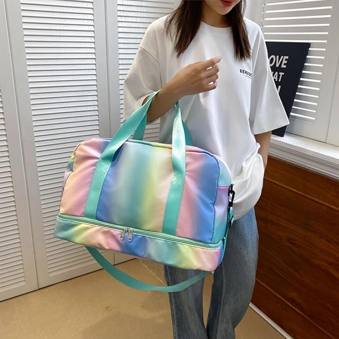 Sports Duffel Bag, Gym Bag with Shoes Compartment & Wet Pocket, Waterproof Overnight Bag Travel Bag Dance Bag for Girl, Weekend Bag for Women (gradient green)