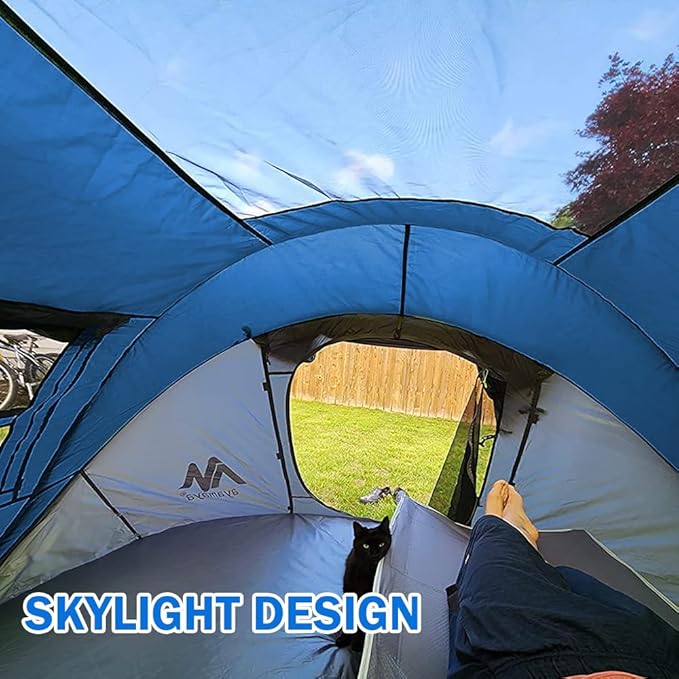 - 2 Doors: The tent with 2 doors, 2 large mesh windows and a big sky window overhead, offers very good air circulation.