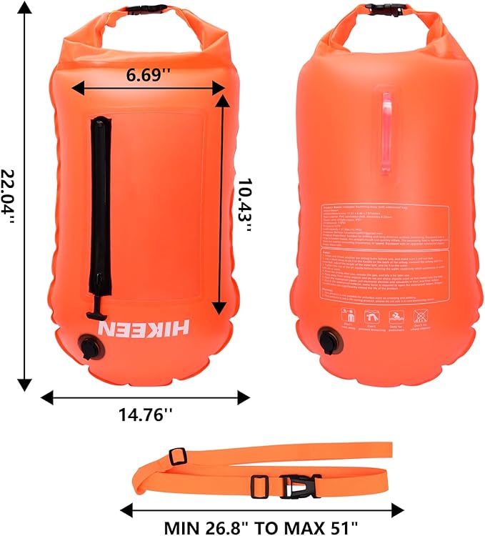 - [VISIBILITY IN OPEN WATER] The Hikeen Swim Buoy is a bright orange colour that stands out in the water and is clearly visible in open water, it's perfect for open water swimmers, triathletes or anyone else who wants to increase their confidence in the water.
