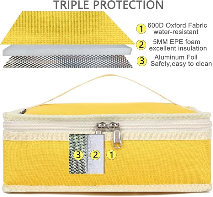 - ✿ Material:The FlowFly reusable Lunch Bag is made of the highly durable 600D Polyester,food grade aluminum foil inside, padded with extra thick 5mm PE foam and sturdy zippers.