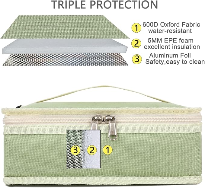 - ✿ Material:The FlowFly reusable Lunch Bag is made of the highly durable 600D Polyester,food grade aluminum foil inside, padded with extra thick 5mm PE foam and sturdy zippers.