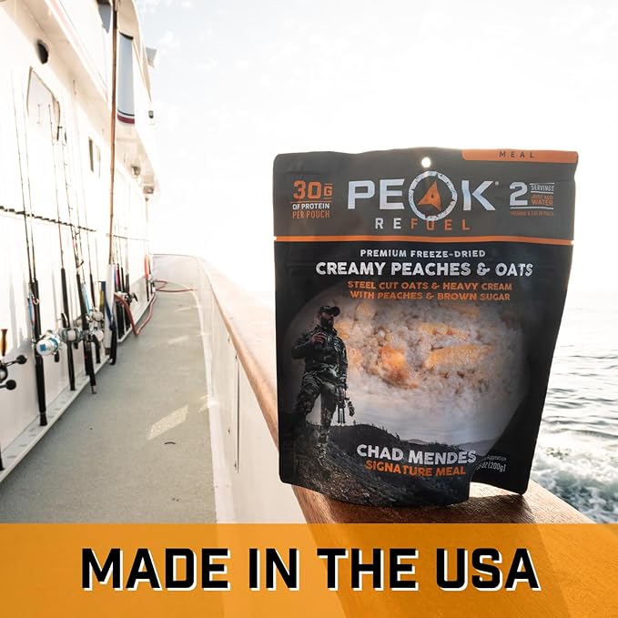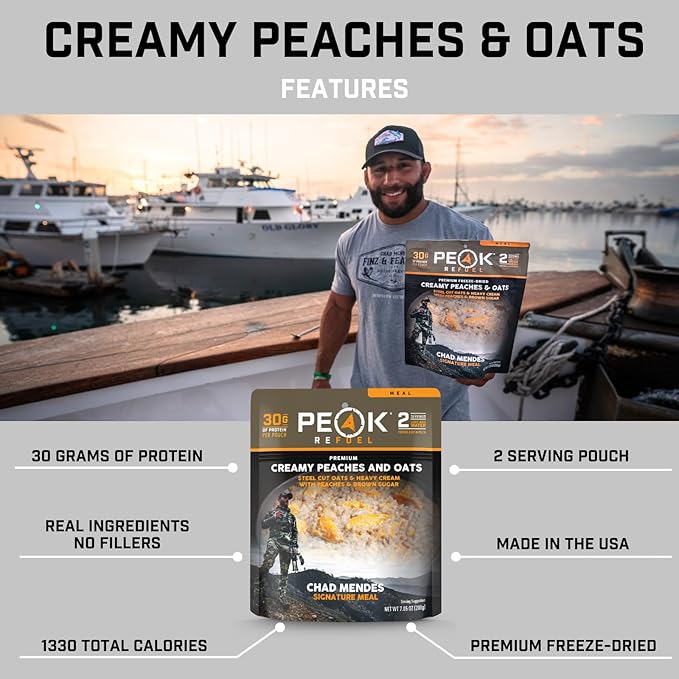 Peak Refuel Creamy Peaches and Oats | Chad Mendes Signature Meal | Premium Freeze-Dried Variety Meals | Hunting, Survival, Camping, Backpacking Food | High-Protein Game Meats | MRE | Made in USA