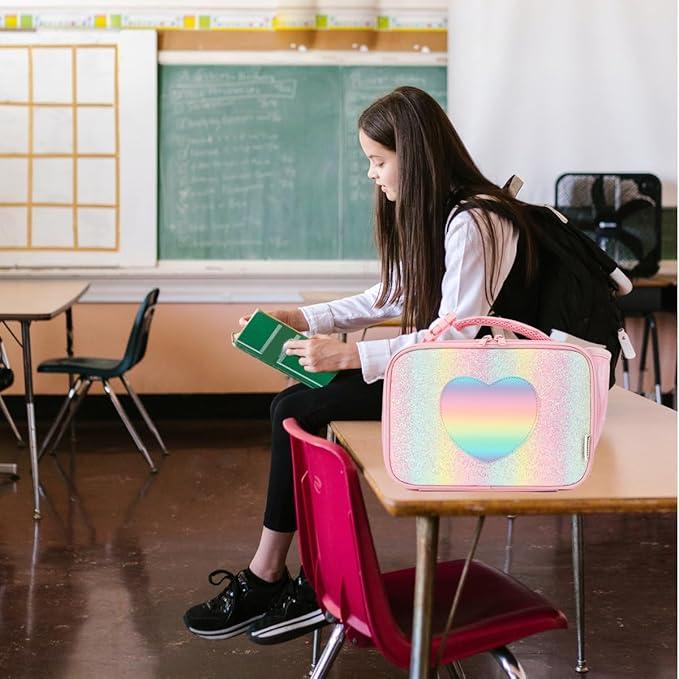 Insulated Lunch Box for School, Thermal Reusable Durable Freezable Lunch Bags for Kids Boys Girls Men Women - Small Soft Cooler Portable Lunch Tote Kit for Work Picnic Travel,Rainbow Glitter