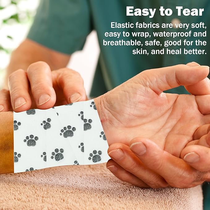 - The bandages are made from high quality porous fabric with bacon strips that are totally safe for your skin as they allow good ventilation. You don't need to worry about they loosen and fall of by sweat or water.They are very light weighted, and safe for your pets as well!(horses, ponies, dogs, cats, etc)