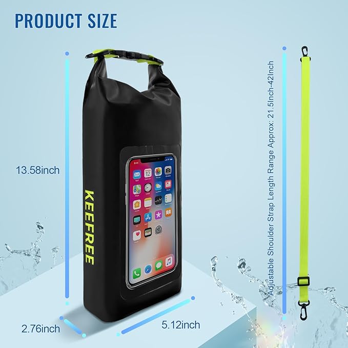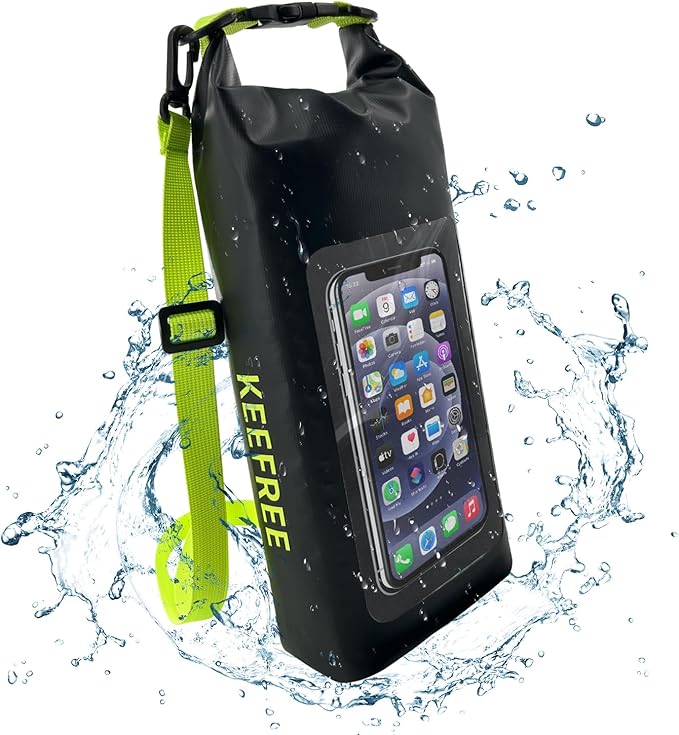 - 【HIGH QUALITY MATERIAL】KEEFREE waterproof dry bag is made from high-quality ripstop PVC (IPX7 rating) with sturdy welded seam which proves to be sturdy, safe and protects your items when outdoors.Solid roll-top closure system provides a perfect seal and keeps out water, snow, dust, sand, and dirt.The buckle and D-rings are made with upgraded POM material, making them stronger and more firm for frequent use
