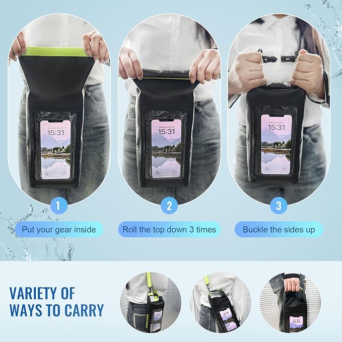 - 【INTEGRATED CLEAR PHONE POUCH】The designated waterproof compartment is made of high-quality material and allows easy storage and carrying of your phone (up to 7" screen in diagonal size),allowing you to stay connected and protected with designated touch screen access for checking messages or emails without the hassle of removing your device. Note: The clear phone pouch is individually sealed and full protected