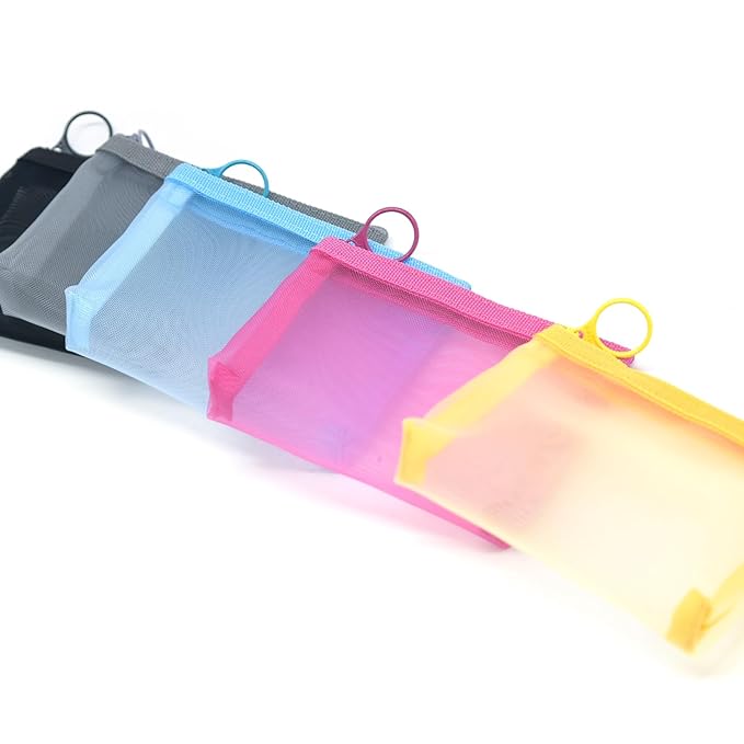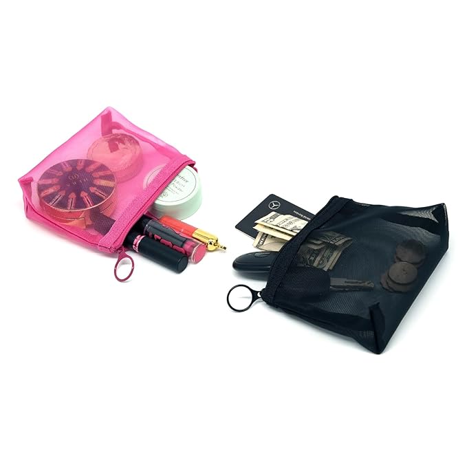 patu Widened Mini Zipper Mesh Bags, Size S, 5" x 4" x 2", 5 Pieces, Beauty Makeup Lipstick Cosmetic Accessories Organizer, Small Travel Kit Storage Pouch, Assorted Colors