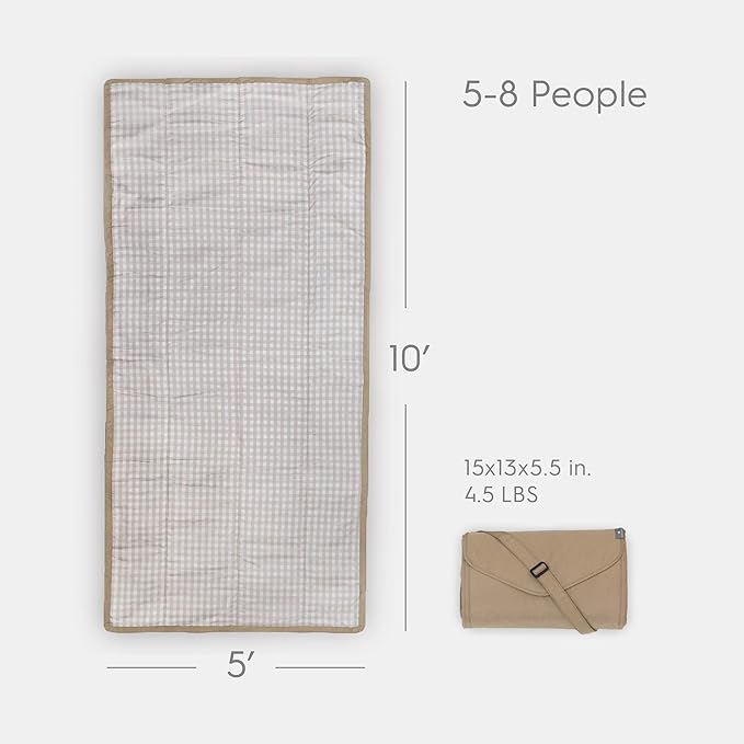 Little Unicorn 5'x10' XL Outdoor Family Picnic & Beach Blanket | Durable & Water-Resistant Fabric | Compact Fold & Easily Wipes Clean | Zipper Pocket (Beige Buffalo Check)
