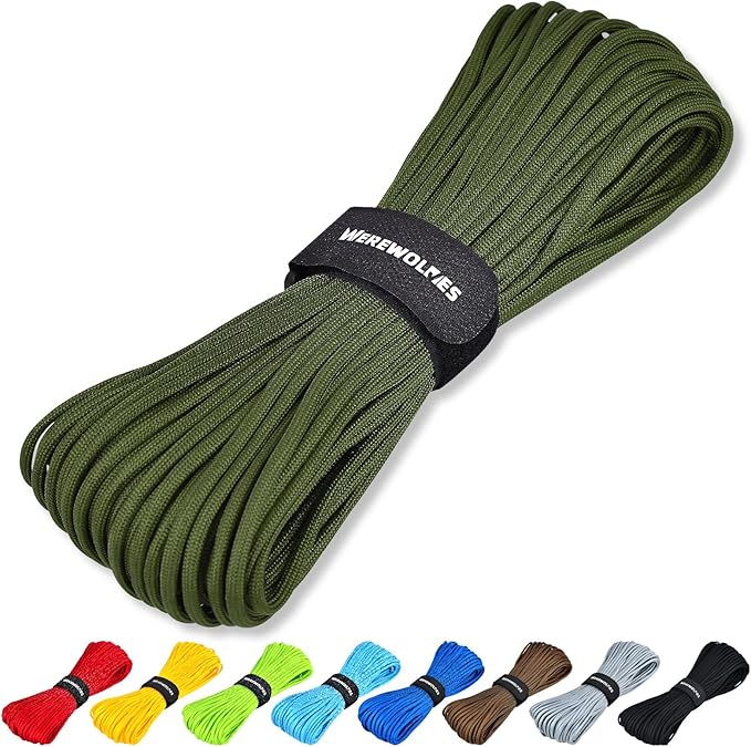 WEREWOLVES Paracord Rope, 7 Strand Type III Parachute Cord 4mm 100ft / 200ft for Crafting, DIY Projects, Survival Bracelets (Army Green, 200 ft)