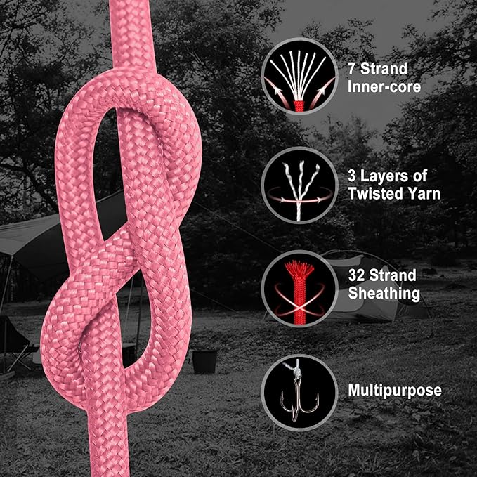 - High Quality Paracord - Our Paracord rope is 5/32" in diameter (about 4mm), featuring a robust 32 strand woven sheath and a core of 7 inner strands for strength and durability. Each strand is composed of three layers of tightly twisted yarn, ensuring maximum reliability in any situation.