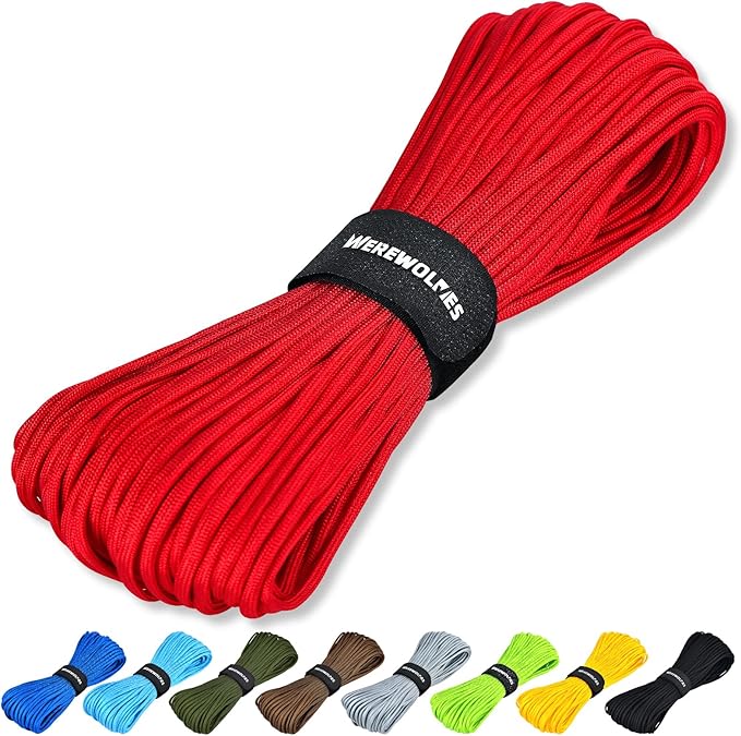 WEREWOLVES Paracord Rope, 7 Strand Type III Parachute Cord 4mm 100ft / 200ft for Crafting, DIY Projects, Survival Bracelets (Red, 200 ft)