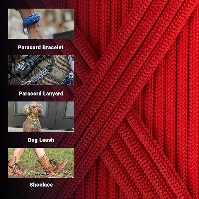 - Multi-Purpose Functionality - Trusted by outdoor enthusiasts, survivalists, and craftsmen worldwide, our paracord is renowned for its versatility. Beyond its traditional uses in camping, hiking, and emergency preparedness, it's also a favorite among DIY enthusiasts for crafting everything from paracord lanyards and bracelets to pet accessories and 1home decor.