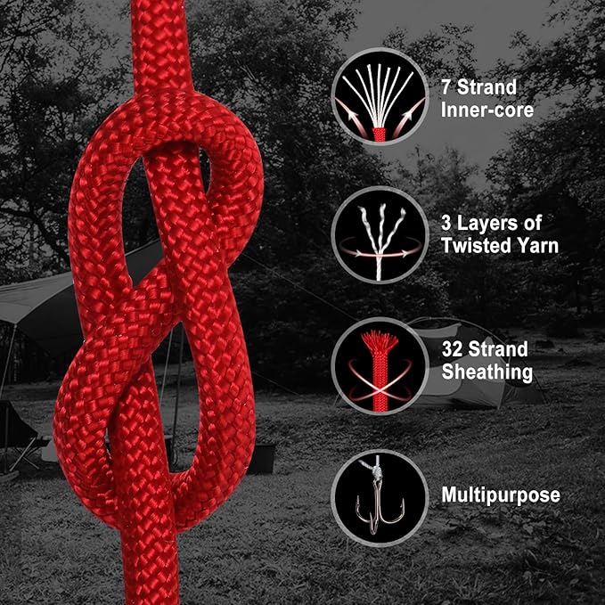 - High Quality Paracord - Our Paracord rope is 5/32" in diameter (about 4mm), featuring a robust 32 strand woven sheath and a core of 7 inner strands for strength and durability. Each strand is composed of three layers of tightly twisted yarn, ensuring maximum reliability in any situation.