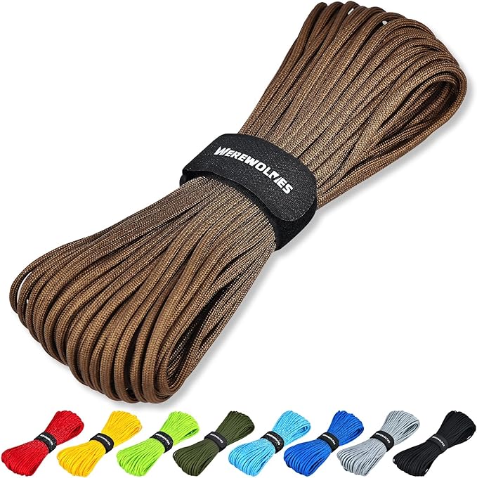 WEREWOLVES Paracord Rope, 7 Strand Type III Parachute Cord 4mm 100ft / 200ft for Crafting, DIY Projects, Survival Bracelets (Brown, 200 ft)