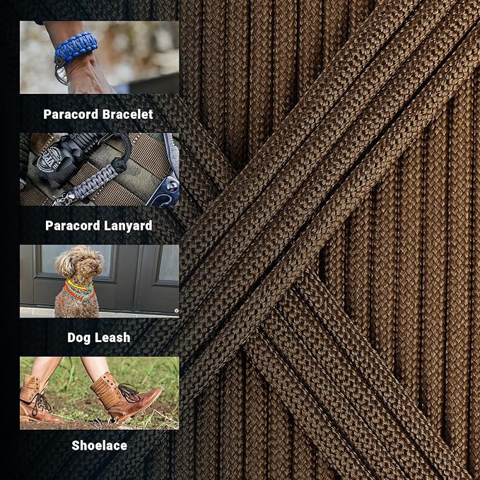 - Multi-Purpose Functionality - Trusted by outdoor enthusiasts, survivalists, and craftsmen worldwide, our paracord is renowned for its versatility. Beyond its traditional uses in camping, hiking, and emergency preparedness, it's also a favorite among DIY enthusiasts for crafting everything from paracord lanyards and bracelets to pet accessories and 1home decor.