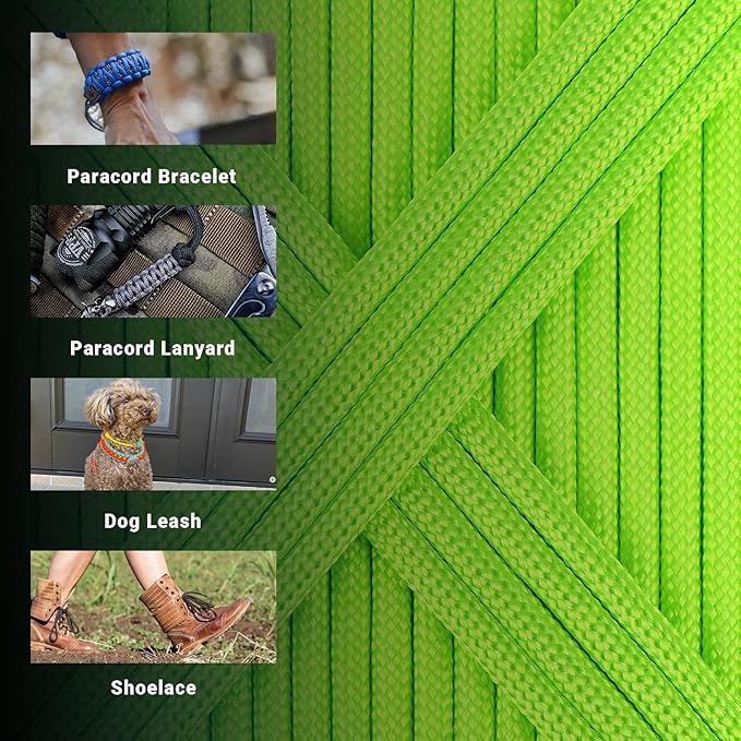 - Multi-Purpose Functionality - Trusted by outdoor enthusiasts, survivalists, and craftsmen worldwide, our paracord is renowned for its versatility. Beyond its traditional uses in camping, hiking, and emergency preparedness, it's also a favorite among DIY enthusiasts for crafting everything from paracord lanyards and bracelets to pet accessories and 1home decor.