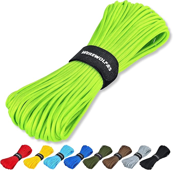 WEREWOLVES Paracord Rope, 7 Strand Type III Parachute Cord 4mm 100ft / 200ft for Crafting, DIY Projects, Survival Bracelets (Neon Green, 200 ft)