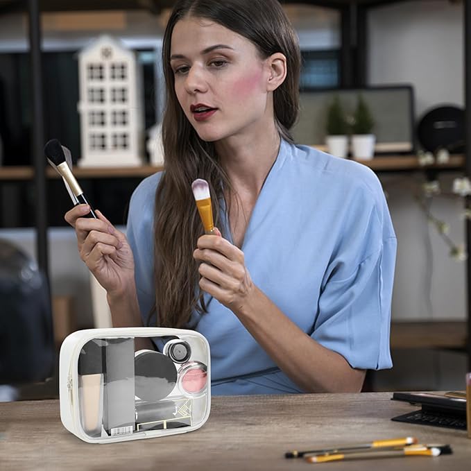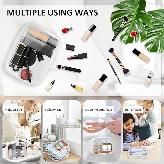 - 【LIGHTWEIGHT & PORTABLE】 The cosmetic bag can easily fit in your carry-on bag or luggage, and can be placed in the bathroom, on a dresser, or on an office desk. It's a convenient way to hold personal essentials such as cleanser, sunscreen, face cream, medicine, and lipsticks