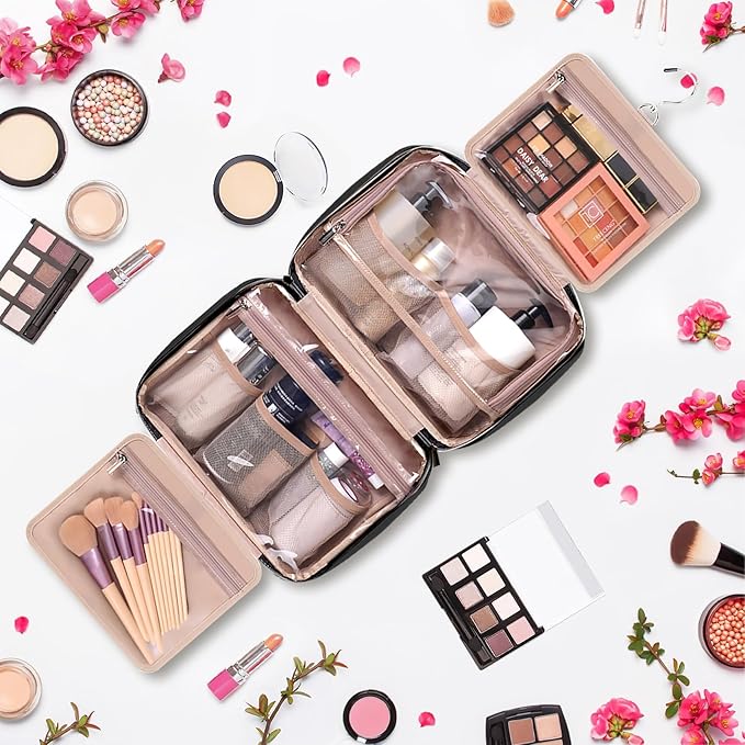 Travel Size Toiletry Bag for Women, Portable Cosmetic Bag with Hanging Hook, Travel Essentials Water-resistant Makeup Organizer for Accessories, Shampoo, Full-size Container, Toiletries