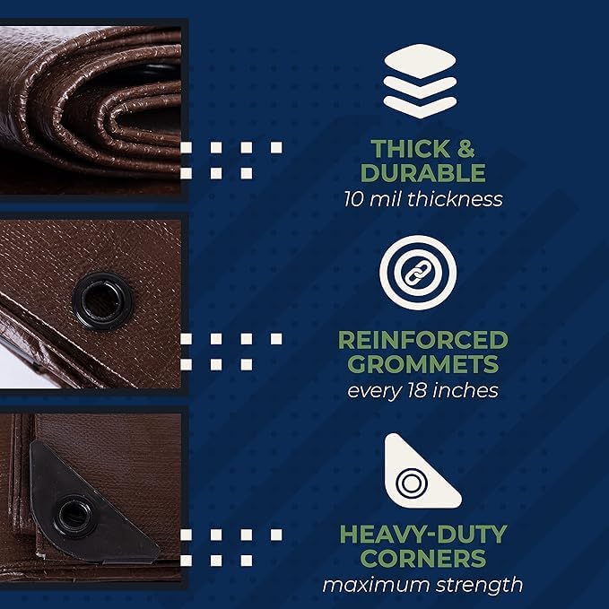 - Heavy Duty Tarp: Our tent tarp is made of high-quality material to withstand any type of weather; rain, shine, snow, and wind. The heavy-duty corners provide maximum strength - giving you peace of mind that your stuff is safe and dry.