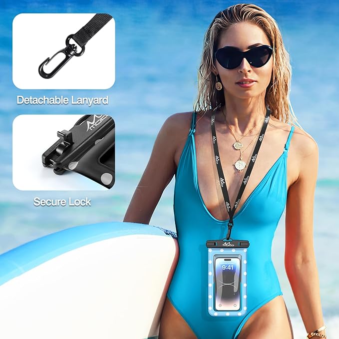 - Buoyancy and IPX8 Certified Waterproof - Tested over 1000 times with no leaks or water damage during 100 feet/ 30 meters. The waterproof phone pouches also offer buoyancy, giving you a more worry-free experience when you are swimming. You no longer have to worry about your phone sinking to the bottom of the ocean because it will float instead.