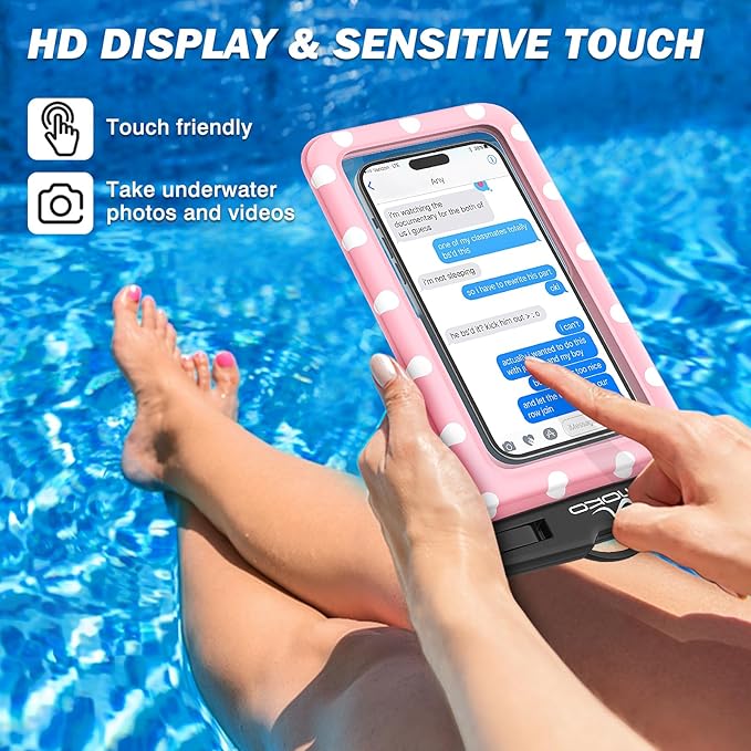 - HD Display and Sensitive Touch - Made of premium Soft PVC Material and a Clear Window design on the front for sensitive touch and quick response, making it easy to watch videos and check email. Perfect for taking pictures and capturing those special moments. Note: It is normal for the screen sensitivity to decrease as the water pressure increases. At this point, you can easily press the volume button to take a picture.