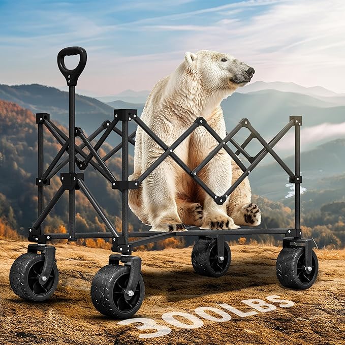 - Carry More, Hold Heavier: Our utility wagon boasts an upgraded frame and larger wheels, expanding its capacity to 200 liters and weight limit to 300 lbs; Paired with the convenient mesh cover, it fulfills all your camping essentials transport needs; Ideal for outdoor enthusiasts