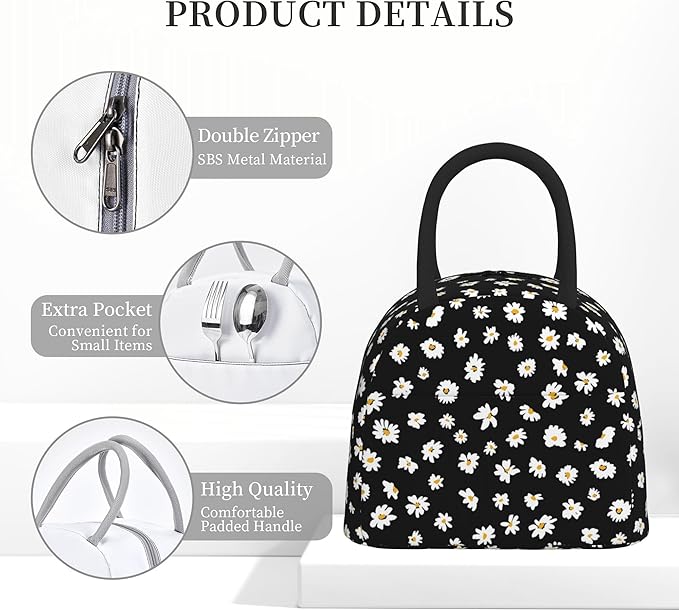 Daisy Lunch Bag Lunch Box for Women Men Boys Girls, Reusable Insulated Lunch Tote Bag, Leakproof Thermal Cooler Sack Food Handbags High Capacity for Work School Picnic Camping Gifts
