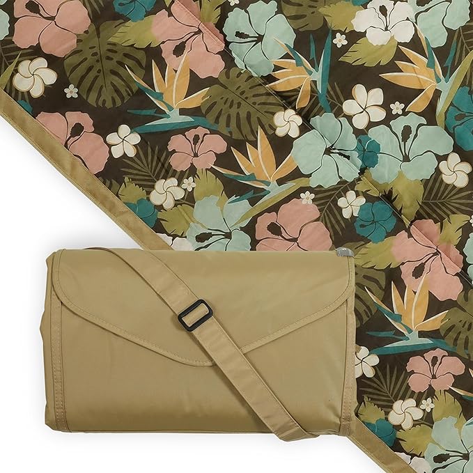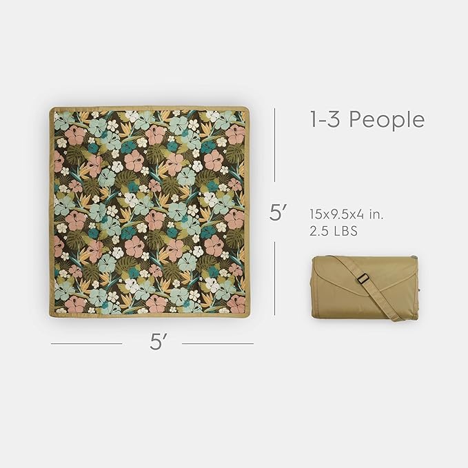 Little Unicorn 5'x5' Outdoor Family Picnic & Beach Blanket | Durable & Water-Resistant Fabric | Compact Fold & Easily Wipes Clean | Zipper Pocket (Hibiscus)