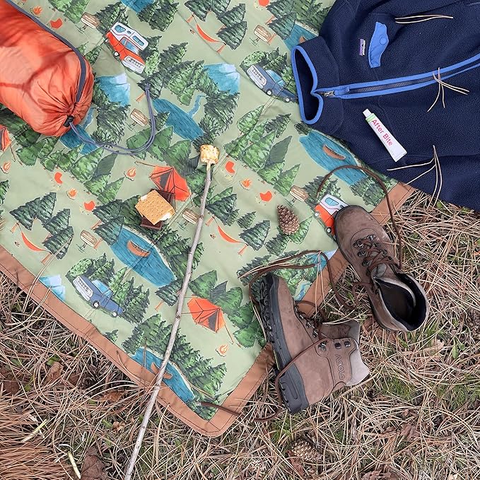 Little Unicorn 5'x10' XL Outdoor Family Picnic & Beach Blanket | Durable & Water-Resistant Fabric | Compact Fold & Easily Wipes Clean | Zipper Pocket (Camp)