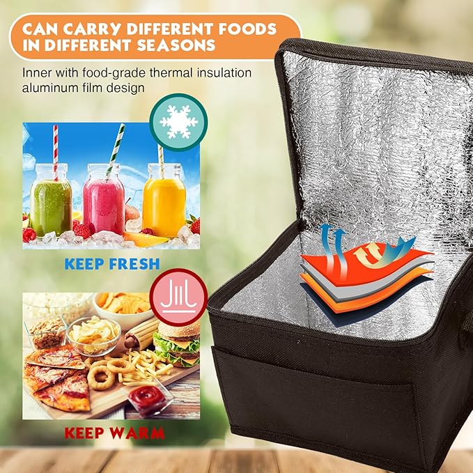 - Keeps Food Cold or Warm: Built with thick insulation and a PEVA-lined interior, these lunch totes keep meals fresh, warm, or cold for hours. Simply wipe the inside with a damp cloth to clean, perfect for everyday use without the fuss.