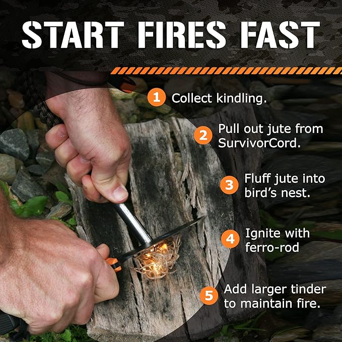 - EXTREME WEATHER RESISTANCE – Built to withstand the elements, our paracord rope performs flawlessly in any weather condition. Our 550 cord has an integrated paraffin-imbued, twisted jute fiber strand that will catch fire quickly during emergencies. You’ll have a fire going even in the pouring rain with these firestarters.