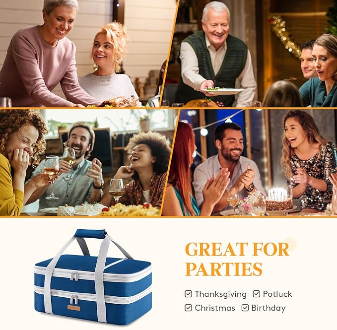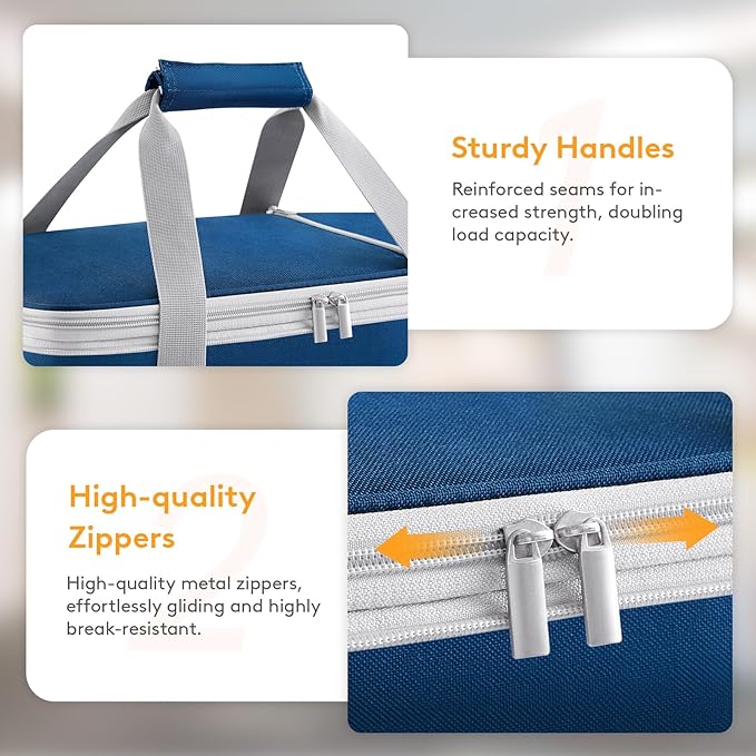 Double Decker Insulated Casserole Carrier for Hot or Cold Food, Lasagna Lugger Tote for Potluck Parties/Picnic/Cookouts, Fits 9"×13" Baking Dish, Pure Blue