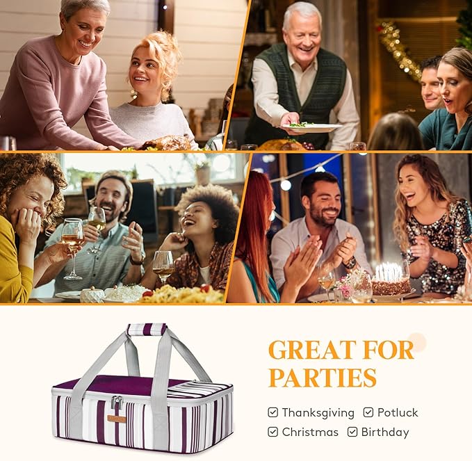 Insulated Casserole Carrier for Hot or Cold Food, Lasagna Lugger Tote for Potluck Parties/Picnic/Cookouts, Fits 9"×13" Baking Dish, Purple