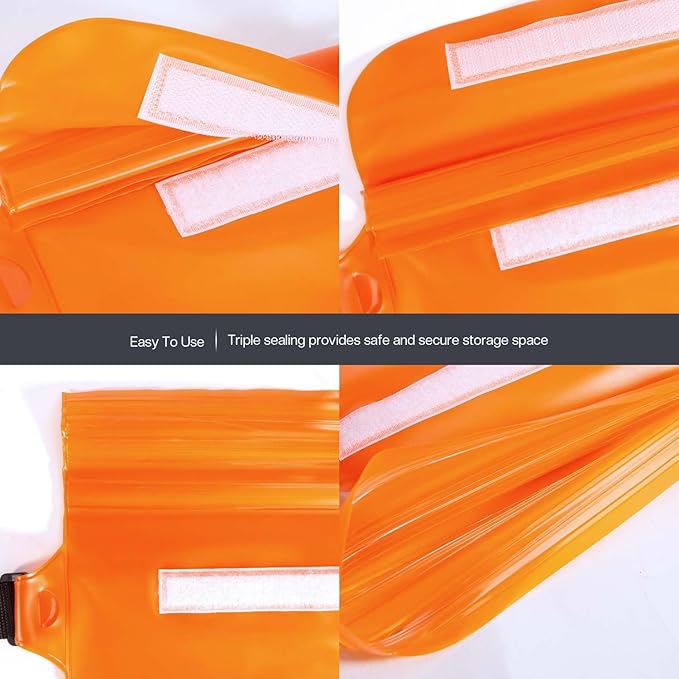 - 𝟏𝟎𝟎% 𝐖𝐚𝐭𝐞𝐫𝐩𝐫𝐨𝐨𝐟 - The black waterproof pouch bag made from high quality and tough PVC material with waterproof coating. Super waterproof seal performance IP68 waterproof and scratch-resistant material have been upgraded and more durable! The dry bag with three Zip-lock Seals and a Folding Velcro over top. Perfect for camping, hiking, snorkeling, swimming, sailing, paddle surfing, tubing, kayaking, rafting, water slides or water sports, etc.