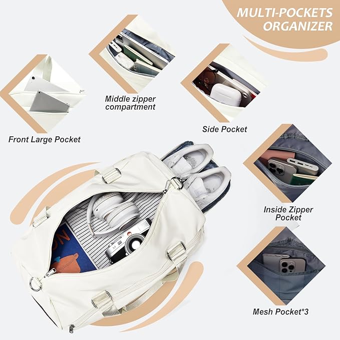 - Multifunctional Gym Bag: A perfect choice for carrying all your gym and travel essentials. It can be used as a gym bag, yoga bag, sports bag, airplane travel bag, duffel bag, weekender bag, carry-on bag, beach bag. This gym bag is perfect for gym, sports, shopping, gym, yoga, beach, leisure, etc. It is also a thought gift for your friends or family members who like sports and traveling