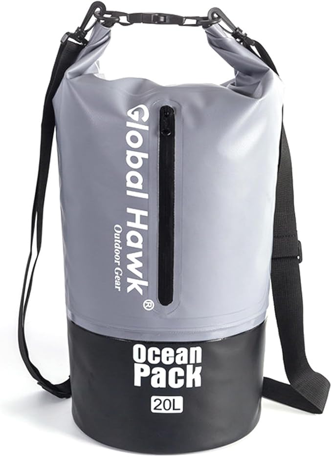 Waterproof Dry Bags: 10L, 20L Sizes - Ideal for Kayaking, Fishing, Rafting, and More! Adjustable Strap for Ultimate Convenience. Stay Dry While Adventuring (Gray, 20L)
