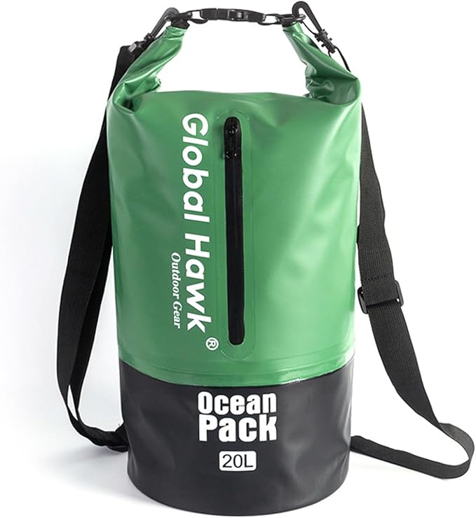 Waterproof Dry Bags: 10L, 20L Sizes - Ideal for Kayaking, Fishing, Rafting, and More! Adjustable Strap for Ultimate Convenience. Stay Dry While Adventuring (Green, 20L)