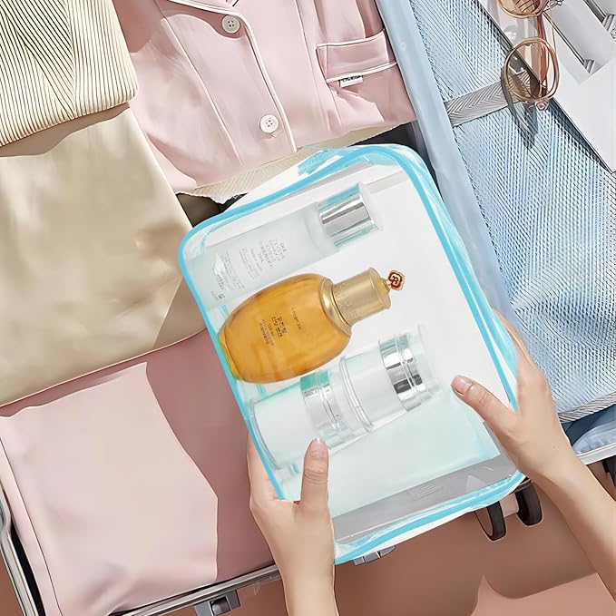 • 【Packaging & Size】10 pack large clear cosmetic bags, which are portable and durable. It measures 9.8 inches x 7.1 inches x 2.4 inches.