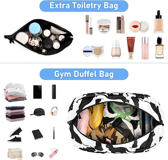 - 【Travel Duffel Bag With Compartment】This travel bags come with small toiletry bag can store your cosmetics/toiletries. The main compartment that can store your clothes and items. The small waterproof zipper bag inside can be placed in private items, which is not easy to lose. There is a waterproof partition at the bottom, which can be placed in wet clothes or your shoes.