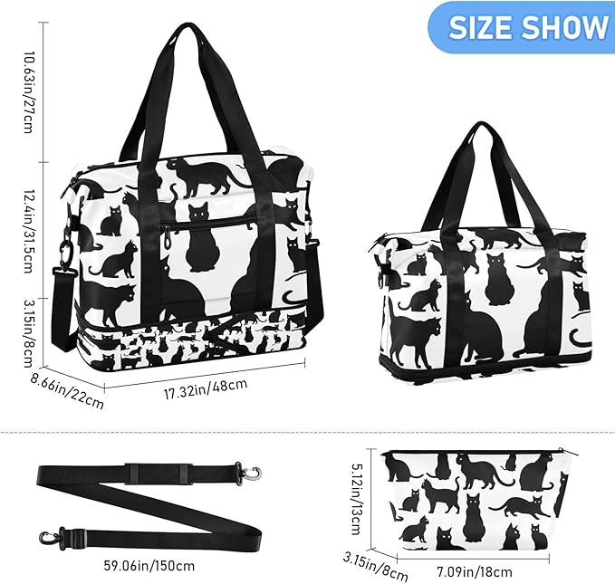 Cats Travel Duffel Bag Gym Tote Bag for Sports Waterproof Carry On Weekender Bag with Compartment