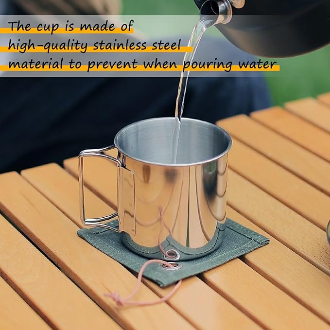 - ☕【FAST HEATING】Our camping kettle can be used on an open fire and induction cooker. The metal bottom has high thermal conductivity for more uniform heating, allowing you to boil water in just 3 to 5 minutes. Enjoy your steaming hot cup of coffee or tea quickly and easily with the included cups.